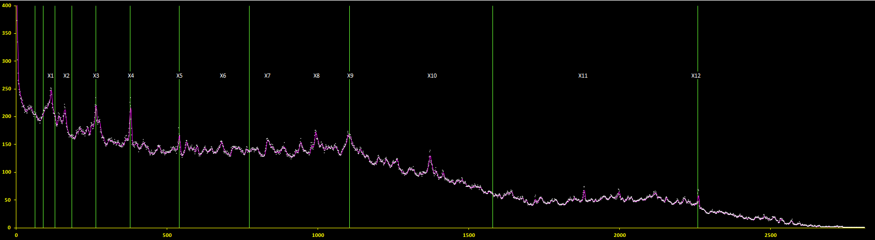 Les principales périodes correspondant à ces pics sont notées, X1, X2, ..., X12 et elles ont pour durées :