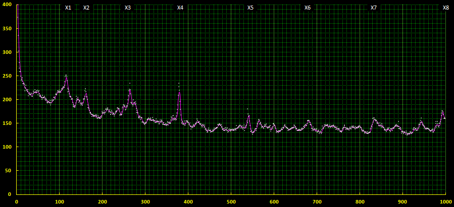 Essayons de trouver une fonction d'approximation qui permette d'obtenir la position des pics du graphique précédent.
