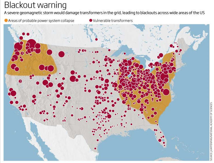 Ce qui est certain à ce stade, c'est que cette hypothèse et ses risques ne semblent pas être correctement appréhendés puisqu'exempts d'indications sur les sites officiels du NOAA... La NASA a toutefois réalisé une étude prospective, néanmoins sans fournir d'ordres de grandeur chiffrés. Plus récemment, j'ai relevé l'article ci-après qui semble soutenir l'idée qu'un "pulse électromagnétique solaire" fait son chemin, même au sein du NOAA:
