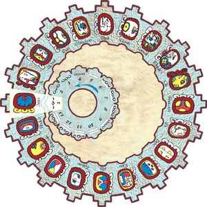 [[image:Tzolkin.jpg|thumb|center|Système de cadrans coulissants. Ici en 13x20 jours un cycle complet est accompli]] | [[image:Tzolkin.jpg|thumb|center|Système de cadrans coulissants. Ici en 13x20 jours un cycle complet est accompli]] | ||
