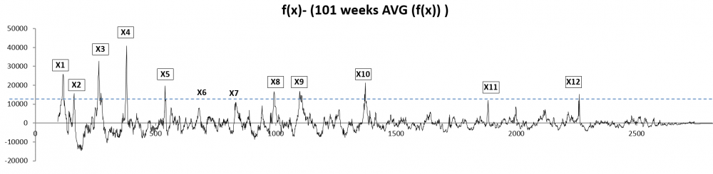 By retaining only the 12 strongest waves on the preceding diagrams, here are some “key” dates: 1947, 1952, 1954, 1965, 1974…