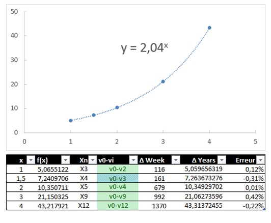 - ↑ 5.0 5.1 Use of a Monte Carlo method: selection of 4 out of 6 waves drawn at random between 1947 and 2000, and computation of the coefficient of determination R². Approximation of the density distribution of coefficients of determination by a Gumbel law, applicable to phenomena that follow an exponential distribution. Note: over thousands of draws, a regression close to a power of 2 was never obtained; adding the constraint “close to a power of 2” would have made the result even more improbable.